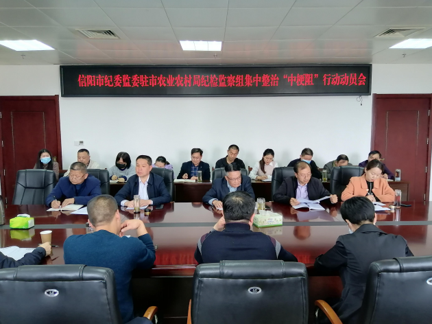 會(huì )議傳達學(xué)習了《中共信陽(yáng)市紀委辦公室關(guān)于充分發(fā)揮派駐紀檢監察組作用集中整治“中梗阻”行動(dòng)方案》,對整治行動(dòng)作出了動(dòng)員部署。派駐紀檢監察組主要負責人李彬青同志對開(kāi)展整治行動(dòng)提出意見(jiàn):一是深化認識,提高站位。深刻認識開(kāi)展“中梗阻”專(zhuān)項行動(dòng)是貫徹落實(shí)市委關(guān)于治理“中梗阻”、打造最優(yōu)營(yíng)商環(huán)境的現實(shí)需要,是開(kāi)展黨員干部能力作風(fēng)建設年活動(dòng)的載體抓手,是對“服務(wù)企業(yè)、服務(wù)基層、服務(wù)群眾”大比武的檢驗。二是明確任務(wù)、壓實(shí)責任。“中梗阻”集中整治主要目標是查處一批科級干部“中梗阻”案件;發(fā)現一批作風(fēng)紀律方面的典型問(wèn)題;干成一批“服務(wù)企業(yè)、服務(wù)群眾、服務(wù)基層”的實(shí)事好事。通過(guò)集中整治,推動(dòng)監督單位黨員干部執行能力大提升、辦事效率大提高、作風(fēng)形象大轉變,企業(yè)群眾基層“三滿(mǎn)意”。市農業(yè)農村局、市農科院、市農機中心要層層壓實(shí)責任,要以“說(shuō)了算、定了干、干必成”的拼搏精神,全力打造最優(yōu)營(yíng)商環(huán)境。三是提升能力、砥礪作風(fēng)。整治“中梗阻”專(zhuān)項行動(dòng),切實(shí)優(yōu)化營(yíng)商環(huán)境,目的是提升廣大干部特別是領(lǐng)導干部的履職能力、依法行政、廉潔從政、提升服務(wù)社會(huì )經(jīng)濟發(fā)展的能力水平。同時(shí)也是對廣大黨員干部作風(fēng)素質(zhì)的一次大檢驗,以勇于自我革命的精神,加強學(xué)習,刻苦鉆研,干一行愛(ài)一行,愛(ài)一行專(zhuān)一行,以過(guò)硬的作風(fēng)、堅實(shí)的專(zhuān)業(yè)知識,全力服務(wù)好信陽(yáng)經(jīng)濟社會(huì )的發(fā)展,為“美好生活看信陽(yáng)”做出自己應有的貢獻。