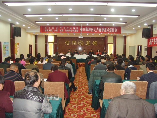春節剛過(guò),春意漸濃。3月12日,現代農業(yè)技術(shù)體系水稻、小麥、油菜、麻類(lèi)信陽(yáng)綜合試驗站共同舉辦了“2015年春季種田大戶(hù)技術(shù)培訓會(huì )”,標志著(zhù)國家現代農業(yè)產(chǎn)業(yè)技術(shù)體系信陽(yáng)綜合試驗站2015年技術(shù)培訓活動(dòng)全面啟動(dòng)。
