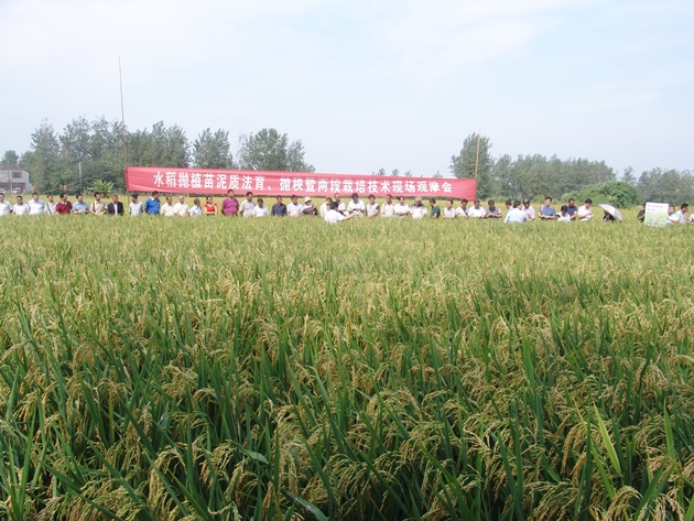 我院召開(kāi)水稻拋植苗泥質(zhì)法育、拋秧暨兩段栽培技術(shù)現場(chǎng)觀(guān)摩會(huì )