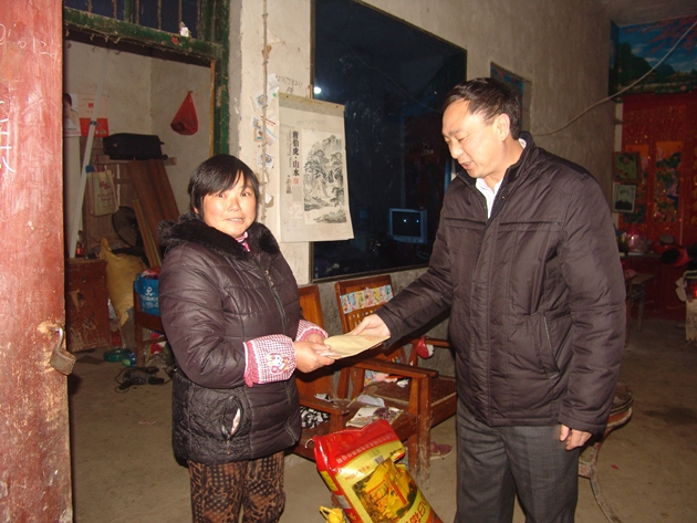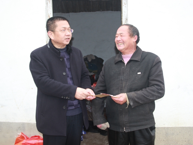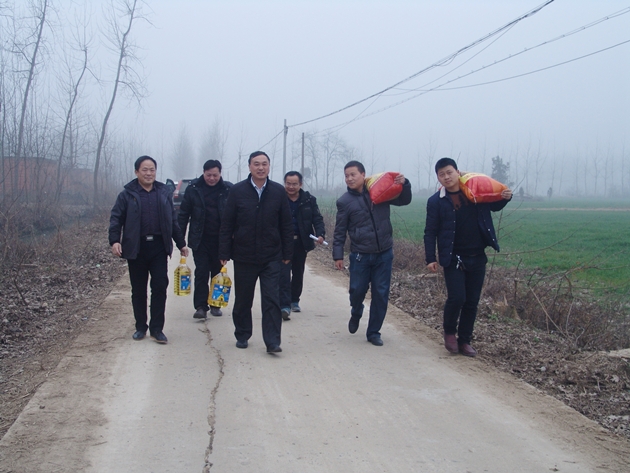 1月3日,2017年的第一個(gè)工作日,我院段仁周院長(cháng)、韓勛來(lái)書(shū)記、劉祥臣副院長(cháng)等一行7人前往息縣小茴店鎮張老莊村,逐一走訪(fǎng)慰問(wèn)了該村特困戶(hù)、五保戶(hù)和殘疾戶(hù),給貧困戶(hù)們送去了大米、食用油以及慰問(wèn)金等。每到一處,院領(lǐng)導等都與困難群眾進(jìn)行一對一、面對面的交流,詳細了解他們的生產(chǎn)、生活和身體狀況,并鼓勵他們要堅定生活信心,勇敢面對困難,在黨和政府的支持幫助下,努力改善生產(chǎn)和生活條件。當得知,2016年該村56戶(hù)困難群眾已有22戶(hù)率先實(shí)現了脫貧時(shí),段院長(cháng)感到非常的欣慰,表示要繼續拿出切實(shí)可行的幫扶措施,為扶貧工作提供有力的科技支撐,幫助張老莊村盡早實(shí)現全面脫貧。