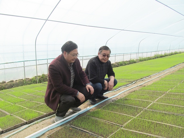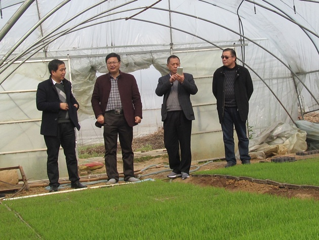 3月29日,河南省水稻產(chǎn)業(yè)技術(shù)體系首席專(zhuān)家、河南省農科院糧作所尹海慶研究員在河南省水稻產(chǎn)業(yè)技術(shù)體系信陽(yáng)綜合試驗站站長(cháng)、我院副院長(cháng)劉祥臣研究員陪同下,來(lái)我市指導再生稻育秧工作。