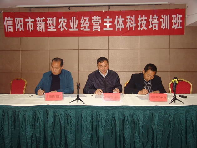 會(huì )上,我院還與河南麥德隆食品有限公司、信陽(yáng)鴻潤家庭農場(chǎng)有限責任公司簽署了伙伴計劃科技服務(wù)協(xié)議。