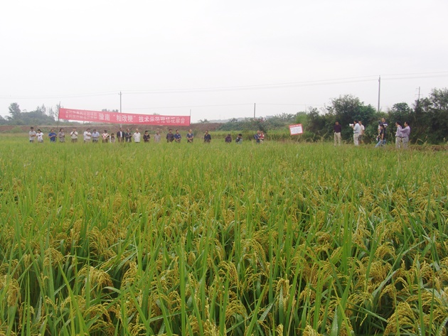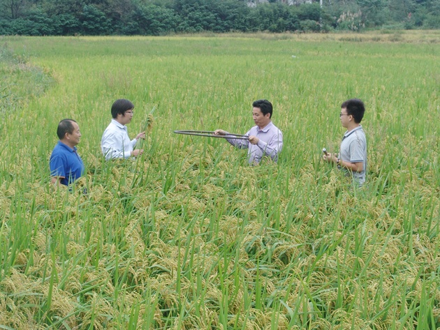 9月20日上午8:10分,在省科技廳駐光山扶貧村周灣村“秈改粳”技術(shù)示范現場(chǎng)觀(guān)摩會(huì )上,我院副院長(cháng)祁玉良研究員向參會(huì )的省科技廳駐周灣村第一書(shū)記陶曼晞及扶貧工作隊、羅陳鄉政府工作人員和周灣村農民代表40余人鄭重宣布:“經(jīng)專(zhuān)家多點(diǎn)取樣測產(chǎn),周灣村核心示范區粳稻理論畝產(chǎn)量915.6公斤,按85折后預計每畝實(shí)收稻谷778.3公斤”。