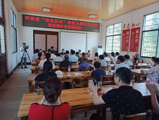 6月13日—14日,河南省“四優(yōu)四化”科技支撐行動(dòng)計劃優(yōu)質(zhì)茶葉專(zhuān)項“茶園綠色防控與生態(tài)茶園建設”示范觀(guān)摩培訓會(huì )在新縣召開(kāi)。信陽(yáng)市林茶局副局長(cháng)宋世奇,省農科院植保所植物蟲(chóng)害研究室武予清研究員,優(yōu)質(zhì)茶葉專(zhuān)項首席專(zhuān)家呂立哲研究員,“茶葉綠色安全高效生產(chǎn)技術(shù)集成、示范”專(zhuān)題負責人趙豐華副研究員,市林茶局、我院、新縣林茶局專(zhuān)業(yè)技術(shù)人員以及新縣茶葉種植合作社、茶葉企業(yè)負責人等60余人參加了培訓與觀(guān)摩。