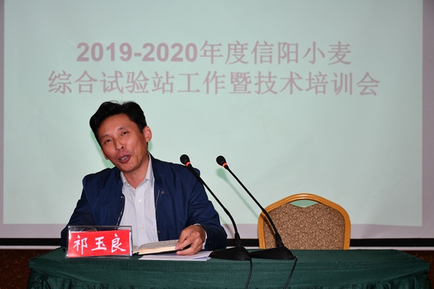 10月11日,信陽(yáng)小麥綜合試驗站2018-2019年度工作暨技術(shù)培訓會(huì )召開(kāi),羅山、息縣、潢川、淮濱、固始、光山、平橋區等試驗站示范縣和國家貧困縣農業(yè)技術(shù)推廣依托單位分管領(lǐng)導、技術(shù)骨干、技術(shù)推廣人員60余人參加了會(huì )議。江蘇省揚州市里下河農科所小麥所所長(cháng)、國家小麥產(chǎn)業(yè)技術(shù)體系揚州綜合試驗站站長(cháng)高德榮研究員,河南省農業(yè)廳植保植檢站病蟲(chóng)防治科科長(cháng)、河南省小麥產(chǎn)業(yè)技術(shù)體系植保崗位專(zhuān)家于思勤研究員、河南省農科“四優(yōu)四化”優(yōu)質(zhì)小麥專(zhuān)項肥料利用專(zhuān)家黃紹敏研究員應邀參會(huì )。我院副院長(cháng)祁玉良研究員參加會(huì )議并講話(huà),院小麥研究所副所長(cháng)周?chē)诟毖芯繂T主持了會(huì )議。