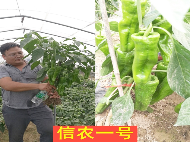 “信農一號”《登記編號:GPD辣椒(2019)410717》屬雜交種,中晚熟,全生育期171天,果型長(cháng)方形,青熟果綠色,老熟果紅色;中抗疫病,中抗炭疽病,耐高溫。2014年進(jìn)行區域試驗,2015年進(jìn)行生產(chǎn)試驗,2016年進(jìn)行展示示范,并推廣種植,平均畝產(chǎn)5050千克,比對照辣天下9號增產(chǎn)5.8%。適宜在河南春季大棚種植。