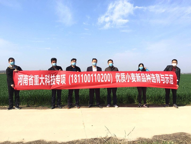我院小麥研究所2018年開(kāi)始在平橋區肖王鄉梁灣村建設試驗及示范基地,目前開(kāi)展試驗項目有8個(gè),鑒定弱筋小麥后代材料有300多份,占地近20畝;依托河南省“四優(yōu)四化”優(yōu)質(zhì)小麥專(zhuān)項、河南省重大科技專(zhuān)項(181100110200)“優(yōu)質(zhì)小麥新品種選育與示范”兩個(gè)專(zhuān)項創(chuàng )建弱筋小麥示范區2個(gè),面積2000余畝,其中核心示范區鄭麥103、鄭麥113兩個(gè)品種面積均為400畝。