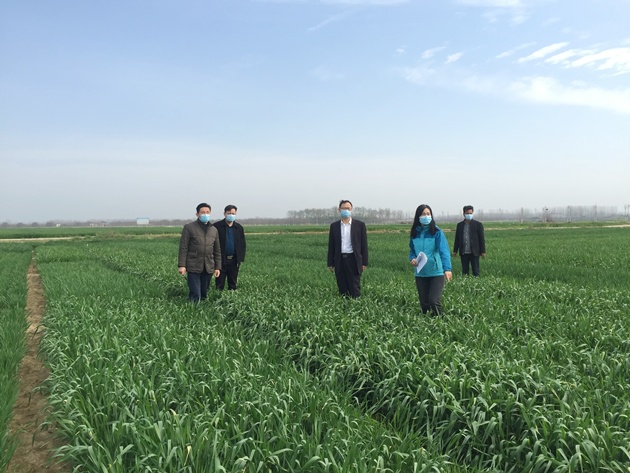 副院長(cháng)祁玉良、總農藝師段斌陪同調研,并就下一步做好示范區“一噴三防”工作及后期麥田管理提出了針對性指導建議。