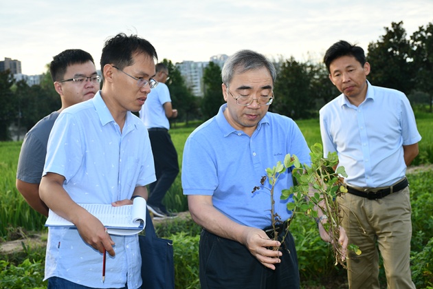 8月15日一大早,中國工程院院士、省農科院院長(cháng)張新友一行輕車(chē)簡(jiǎn)從,專(zhuān)程來(lái)我市檢查指導花生科研工作。我院副院長(cháng)祁玉良及花生科研團隊成員陪同檢查。