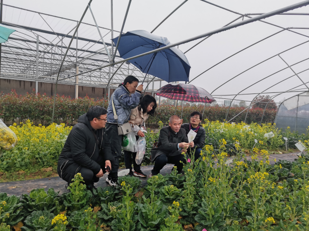 3月8日下午,河南省“四優(yōu)四化”優(yōu)質(zhì)蔬菜專(zhuān)項負責人、中原學(xué)者、省農科院園藝所張曉偉研究員和趙艷艷副研究員一行頂風(fēng)冒雨,來(lái)到我院五里店試驗基地指導黃心菜育種工作。