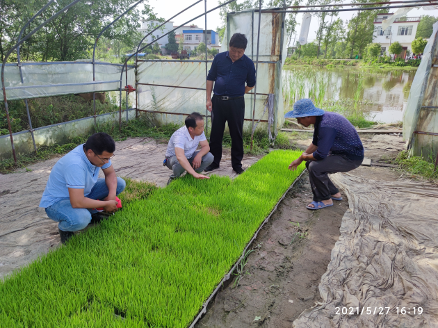 5月27日,河南省水稻產(chǎn)業(yè)技術(shù)體系信陽(yáng)綜合試驗站團隊成員豐大清、余貴龍、張強一行三人前往信陽(yáng)市光山縣、羅山縣指導水稻生產(chǎn)。團隊成員先后前往光山縣富仁輝實(shí)業(yè)有限公司、光山縣孫鐵鋪陳大灣村、羅山縣東姜山、國強家庭農場(chǎng)進(jìn)行了指導。