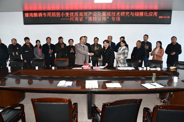 息縣宏升糧食制品有限責任公司發(fā)榜的“豫南釀酒專(zhuān)用弱筋小麥優(yōu)質(zhì)高效產(chǎn)業(yè)化集成技術(shù)研究與規;瘧”是河南省2021年“揭榜掛帥”技術(shù)攻關(guān)類(lèi)榜單項目,其研發(fā)計劃投入1100萬(wàn)元,我院最終與息縣宏升糧食制品有限責任公司達成合作意向并簽訂合作協(xié)議。