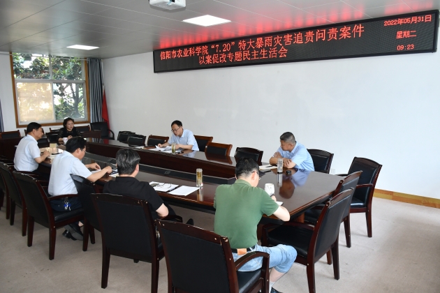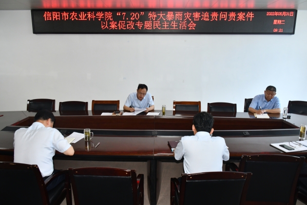 5月31日上午,院黨委召開(kāi)鄭州“7·20”特大暴雨災害追責問(wèn)責案件以案促改專(zhuān)題民主生活會(huì )。院黨委書(shū)記李杰主持會(huì )議,院黨委班子成員參加會(huì )議。駐市農業(yè)農村局紀檢監察組、相關(guān)科室負責人列席會(huì )議。