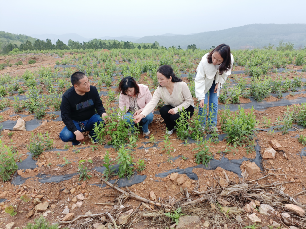在公司中藥材生產(chǎn)基地,團隊聽(tīng)取了公司負責人馬曉輝新建中藥材基地選址、種植品種及面積等情況,現場(chǎng)調查基地中藥材生長(cháng)、病蟲(chóng)草害等。公司應用覆防草布控草技術(shù)有效防控了田間雜草,減少人工除草成本及除草劑使用,降低農藥殘留,保證藥材質(zhì)量。針對蒼術(shù)、黃精、迷迭香等中藥材生產(chǎn)過(guò)程存在問(wèn)題提供技術(shù)指導,對基地蒼術(shù)植株新葉發(fā)黃等癥狀,團隊成員認真研判病蟲(chóng)害種類(lèi)及發(fā)生情況,并提出了具體的防控措施。團隊技術(shù)人員對中藥材后期可能高發(fā)的根腐病、蚜蟲(chóng)等病蟲(chóng)害癥狀及防控措施進(jìn)行詳細講解。根腐病是由真菌引起的根部疾病,發(fā)病早期植株癥狀不明顯,隨著(zhù)病情加重新葉開(kāi)始發(fā)黃,整個(gè)植株的葉片發(fā)黃枯萎,根局部呈黃褐色而腐爛,最后全株死亡,根腐病防控要點(diǎn):一是科學(xué)選址,選擇排水良好砂壤土栽種,忌連作。二是選用無(wú)病害種苗,移栽前進(jìn)行消毒處理;三是加強田間管理增施有機肥,防止田間積水。四是防控發(fā)病初期用70%甲基硫菌靈500~800倍液灌根;五是要及時(shí)拔除病株,病害種植穴用生石灰消毒。蚜蟲(chóng)主要危害中藥材的新梢和嫩莖,以成蟲(chóng)、若蟲(chóng)吮吸嫩葉汁液導致葉片變黃,嚴重阻礙植株生長(cháng),影響藥材產(chǎn)量,其防控措施:一是清除田間及四周雜草,減少蚜蟲(chóng)遷入機會(huì );二是保護和利用天敵,以蟲(chóng)治蟲(chóng);三是采用粘蟲(chóng)黃板誘殺蚜蟲(chóng);四是蟲(chóng)害發(fā)生嚴重期,合理使用高效環(huán)境友好藥劑防治,可選用10%吡蟲(chóng)啉可濕性粉劑800~1000倍液噴霧防治。