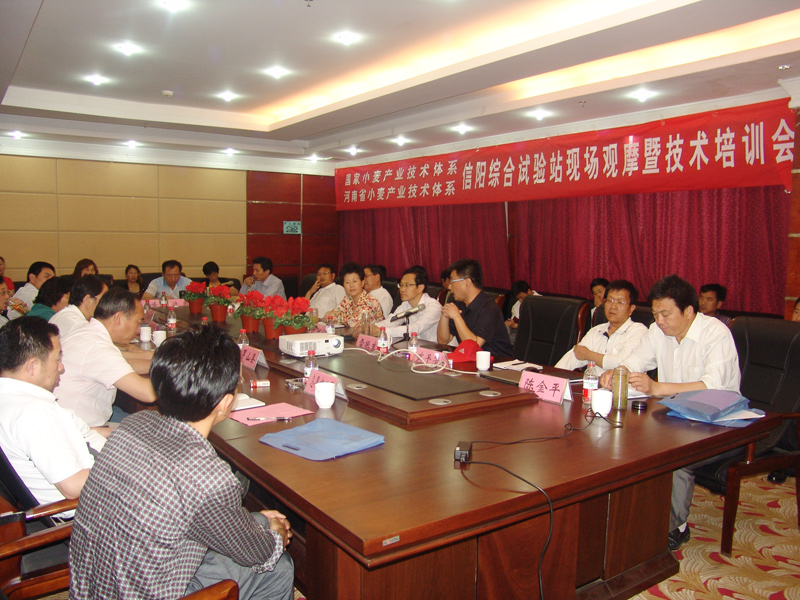 董桂英副縣長(cháng)介紹了息縣小麥生產(chǎn)的基本情況,以及在開(kāi)展小麥高產(chǎn)創(chuàng )建工作的成功經(jīng)驗和做法。鄧仕保副局長(cháng)指出,我市小麥生產(chǎn)與我省其它地區相比在面積、單產(chǎn)、技術(shù)上都有很大的潛力,信陽(yáng)小麥綜合試驗站為我市小麥生產(chǎn)提供了強有力的技術(shù)支撐,希望通過(guò)試驗站的工作能推動(dòng)我市小麥生產(chǎn)再上新臺階。劉祥臣副所長(cháng)介紹了市農科所的小麥科研工作以及信陽(yáng)小麥綜合試驗站工作開(kāi)展情況,市農科所作為技術(shù)依托單位,將全力支持試驗站的工作,為提升信陽(yáng)小麥整體生產(chǎn)水平做出不懈的努力。雷振生博士詳細介紹了河南省小麥產(chǎn)業(yè)技術(shù)體系運行情況,并就信陽(yáng)當前小麥生產(chǎn)中存在的問(wèn)題及未來(lái)發(fā)展方向談了自己的看法:認為信陽(yáng)應從明確主導品種、優(yōu)化栽培技術(shù)、提高病蟲(chóng)草害防控水平等方面入手,著(zhù)力提高小麥單產(chǎn)和品質(zhì)。武予清博士作了“小麥中后期主要病蟲(chóng)害防控技術(shù)”的報告,介紹了小麥中后期病蟲(chóng)害的類(lèi)型及防治方法,并提出了構建稻茬麥區病蟲(chóng)害防控體系的意見(jiàn)。沈阿林博士作了“北緯33度小麥管理與中低產(chǎn)土壤地力提升”的報告,從土壤、氣候、品種與群體結構等方面闡述了小麥高產(chǎn)穩產(chǎn)的土壤基本特征與地力提升的技術(shù)措施。