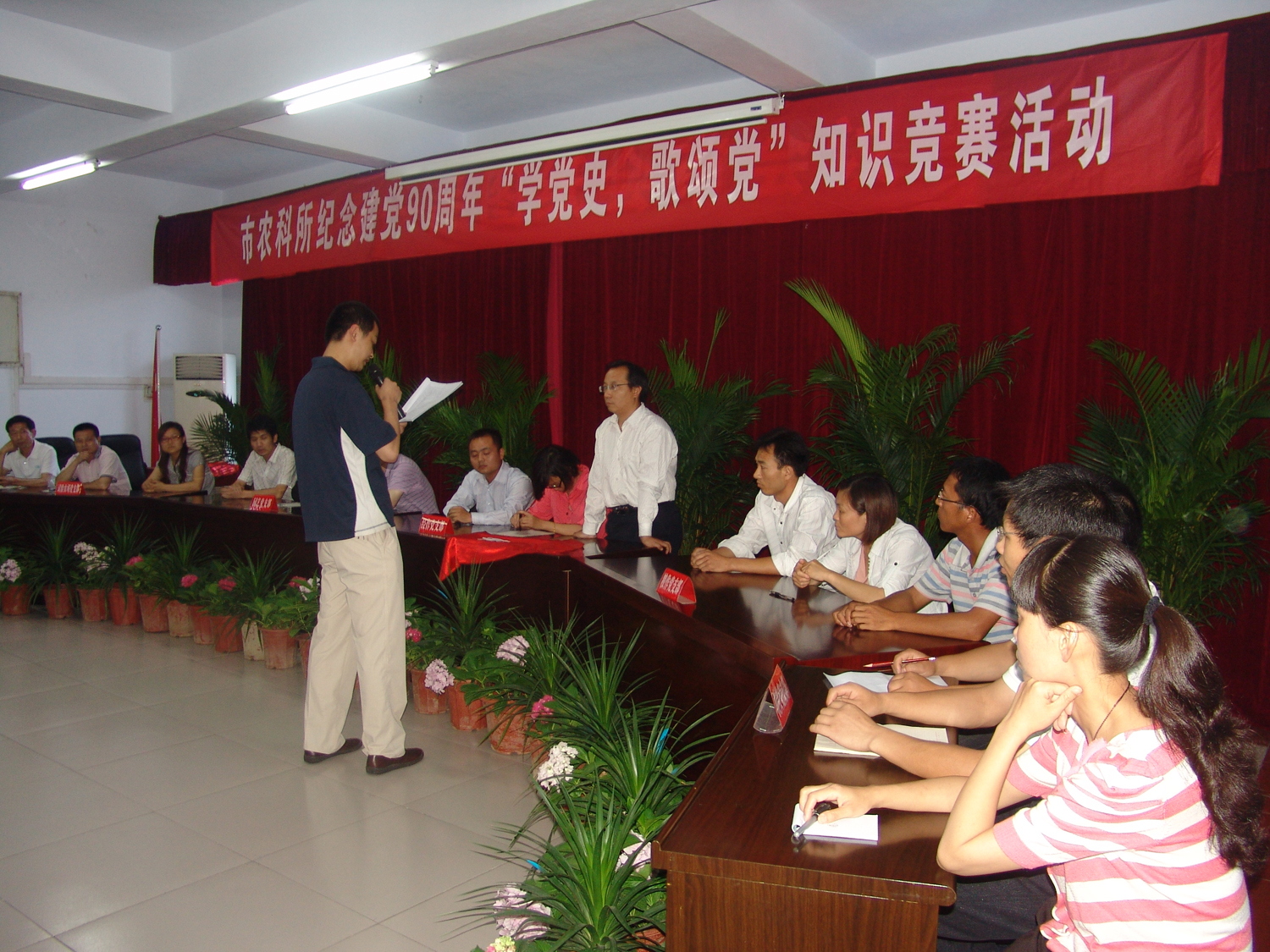 614下午,我所舉行紀念建黨90周年“學(xué)黨史,歌頌黨”知識競賽活動(dòng),黨委書(shū)記管基國、副所長(cháng)宋世枝、紀委書(shū)記李彬青以及各科室、研究室、二級機構負責同志出席活動(dòng),市農科所機關(guān)、糧食作物、經(jīng)濟作物、園藝特產(chǎn)、試驗農場(chǎng)、機關(guān)服務(wù)中心6個(gè)黨支部的18名選手在比賽中展開(kāi)了對決。