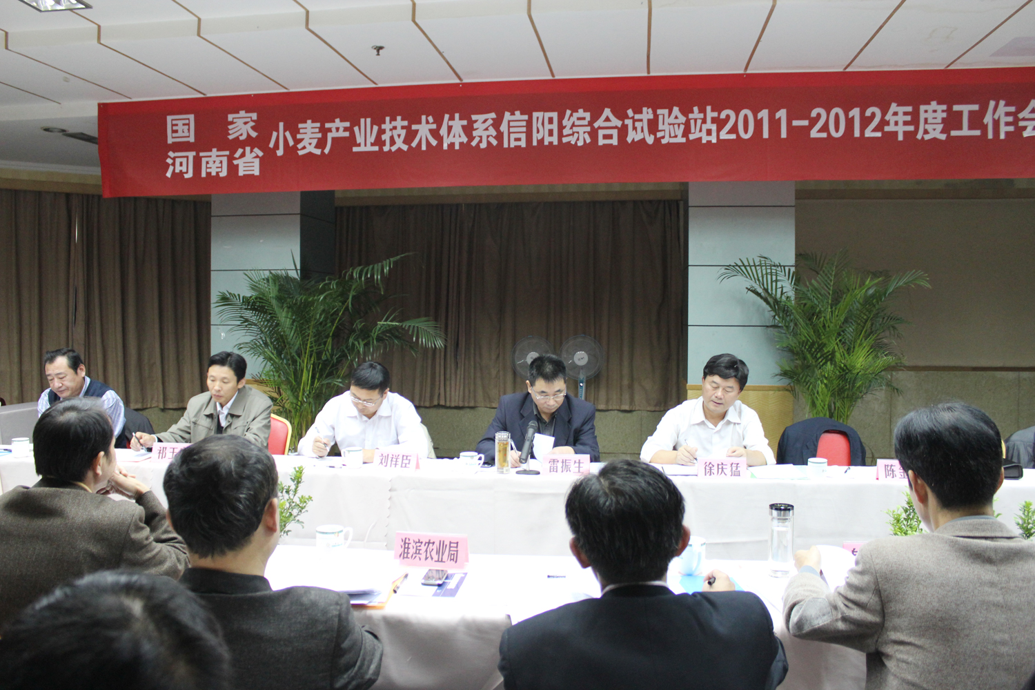 2011年9月30日,國家、河南省小麥產(chǎn)業(yè)技術(shù)體系信陽(yáng)綜合試驗站在信陽(yáng)市金通大酒店召開(kāi)2011—2012年度工作會(huì )議,試驗站專(zhuān)家組成員,羅山、息縣、潢川、淮濱、固始五個(gè)示范縣農業(yè)局、農科所的分管領(lǐng)導和技術(shù)骨干參加了會(huì )議,省小麥產(chǎn)業(yè)技術(shù)體系首席科學(xué)家雷振生研究員、市農業(yè)局副局長(cháng)徐慶猛、市農科所副所長(cháng)劉祥臣應邀參會(huì )。