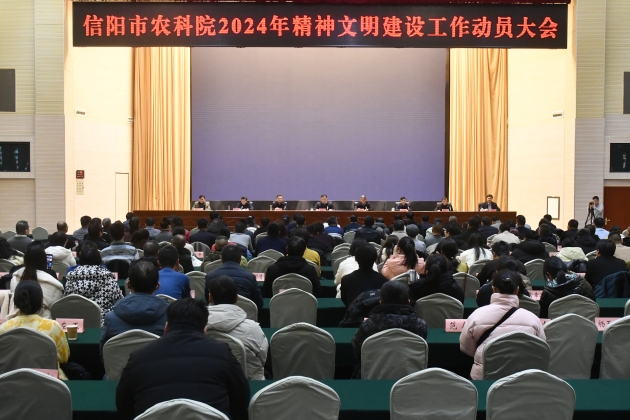 會(huì )議由院黨組成員、副院長(cháng)祁玉良同志主持。會(huì )上,院黨組成員、副院長(cháng)梁成強同志宣讀《信陽(yáng)市農業(yè)科學(xué)院2024年精神文明建設工作實(shí)施方案》,李國喜處長(cháng)、郭忠界書(shū)記、袁野主任先后致詞,院黨組副書(shū)記、院長(cháng)鐘思志作動(dòng)員講話(huà)。會(huì )議要求,全院上下要統一思想、堅定信心,以強烈的責任意識、飽滿(mǎn)的工作熱情、務(wù)實(shí)的工作作風(fēng),扎實(shí)做好爭創(chuàng )文明單位標兵的各項工作,推動(dòng)單位精神文明建設再上新臺階。