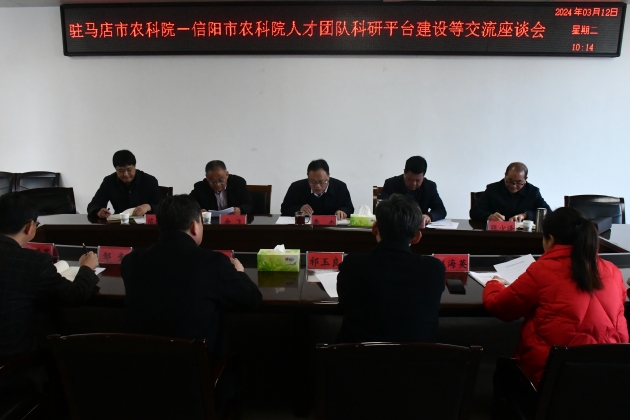 3月12日上午,駐馬店市農科院黨組書(shū)記江海松、副院長(cháng)余飛、張少澤等一行五人來(lái)我院調研人才團隊和科研平臺建設工作。院黨組書(shū)記李杰、副院長(cháng)祁玉良、總農藝師段斌等與來(lái)賓進(jìn)行了座談交流。