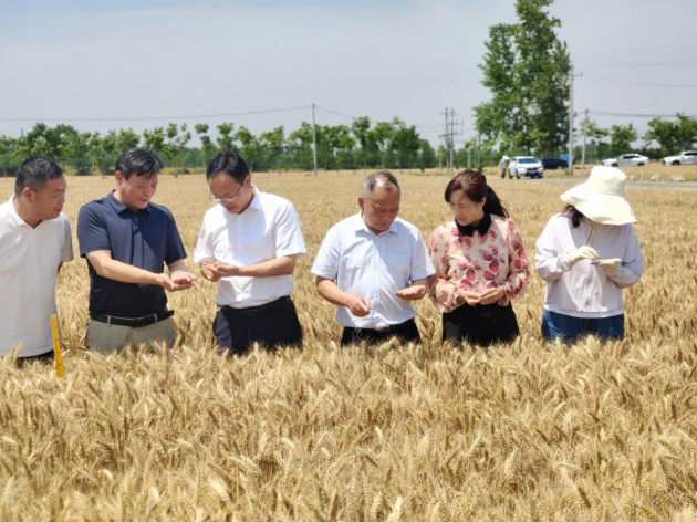5月28日,烈日炎炎,院黨組書(shū)記李杰、總農藝師段斌帶領(lǐng)院小麥所、推廣科相關(guān)同志到息縣示范區調研小麥產(chǎn)量因素形成、單產(chǎn)提升、收獲進(jìn)度等情況,督促指導示范區麥收工作。