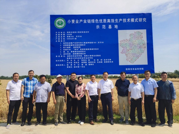 在調研了沿途多個(gè)麥收現場(chǎng)后,李杰一行還查看了宏升公司息縣項店鎮李樓村“揭榜掛帥”項目試驗和示范基地,與現場(chǎng)技術(shù)人員和基地負責人進(jìn)行了溝通交流,李杰對大家的工作和項目的進(jìn)展給予了肯定和贊揚。宏升公司項店基地7萬(wàn)多畝優(yōu)質(zhì)小麥已收獲過(guò)半,由于指導及時(shí)、管理措施到位,基地小麥病蟲(chóng)害發(fā)生極輕,灌漿充分,產(chǎn)量三要素得到了協(xié)調發(fā)展,示范區信麥163平均畝產(chǎn)超過(guò)600公斤,揚麥13萬(wàn)畝集中連片平均畝產(chǎn)超過(guò)410公斤,本年度院企合作再次結出累累碩果。