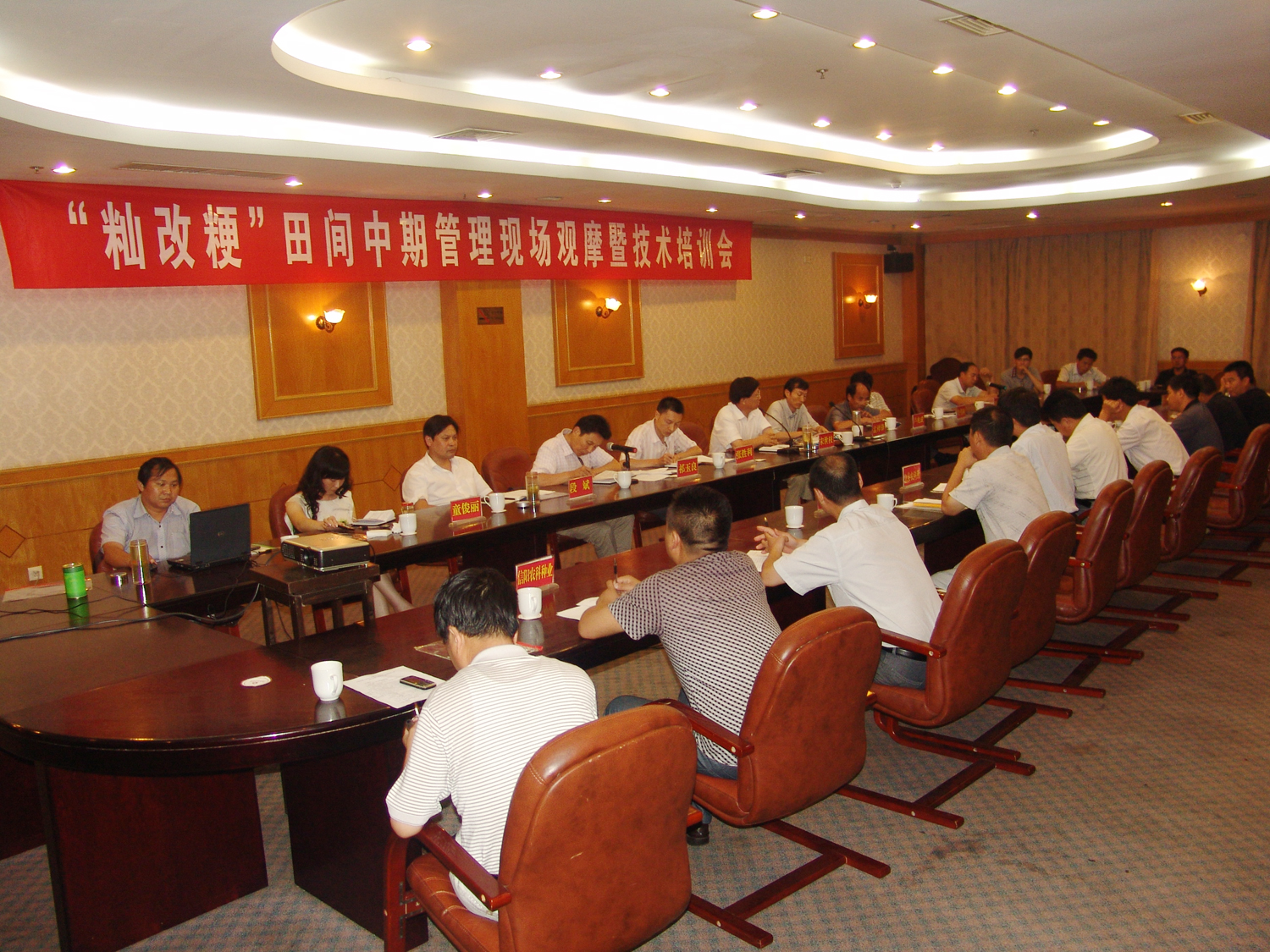 與會(huì )人員首先觀(guān)摩了信陽(yáng)市農科所科學(xué)試驗園正在開(kāi)展的粳稻超高產(chǎn)栽培技術(shù)研究、粳稻新品種引進(jìn)鑒定、水稻兩段栽培技術(shù)研究、粳稻安全齊穗期研究、水稻需水量及灌溉技術(shù)研究等試驗,聽(tīng)取了試驗進(jìn)展情況的介紹,并就各自感興趣的內容現場(chǎng)與科研人員進(jìn)行了交流。在隨后舉行的技術(shù)培訓會(huì )上,項目科研團隊成員、信陽(yáng)市農科所水稻專(zhuān)家何世界作了“粳稻中期田間管理要點(diǎn)”的報告,就粳稻中期需注意的水肥管理和病蟲(chóng)害防治等做了詳細的介紹;項目科研團隊成員、信陽(yáng)市農科所水稻專(zhuān)家魯偉林在會(huì )上宣讀了河南省重大科技專(zhuān)項豫南“秈改粳”區域推進(jìn)工程項目實(shí)施方案編寫(xiě)提綱,就項目的指導思想、主要內容、總體目標、年度計劃安排、考核指標、方法措施、經(jīng)費預算等作了具體的說(shuō)明;各縣區項目負責同志紛紛結合各自縣區實(shí)際,就如何按照項目目標任務(wù)要求,加快推進(jìn)水稻“秈改粳”進(jìn)程談了自己的意見(jiàn);駐馬店市農科院副院長(cháng)孟祥鋒在會(huì )上發(fā)言時(shí)說(shuō),駐馬店市粳稻生產(chǎn)面積很大,但在品種更新、品牌創(chuàng )建以及產(chǎn)業(yè)化開(kāi)發(fā)方面還有很多工作要做,信陽(yáng)粳稻科研實(shí)力強大,產(chǎn)業(yè)化進(jìn)程迅速,他希望信陽(yáng)的專(zhuān)家能夠對駐馬店的“秈改粳”工作多提寶貴意見(jiàn),多加指導,共同做好豫南“秈改粳”工作。