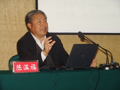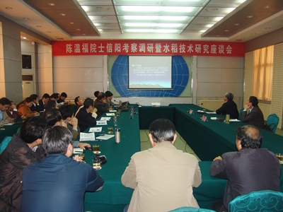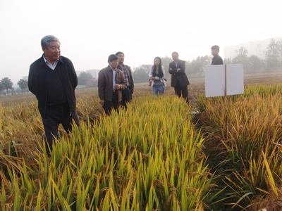 (信陽(yáng)日報記者 曹新。 10月22日,中國工程院院士陳溫福一行來(lái)我市考察“秈改粳”工作,市農科院等市直單位負責同志陪同考察。 陳溫福一行首先深入市農科院“秈改粳”研發(fā)基地。在該研發(fā)基地,他不時(shí)地駐足,手撫稻穗,仔細看到稻穗的飽滿(mǎn)程度,并與科研人員進(jìn)行了現場(chǎng)交流。當前,正值粳稻成熟期,在研發(fā)基地里,金黃色的粳稻株型緊湊、穗大粒飽,豐收在望,預計畝產(chǎn)可達800公斤以上。在詳細了解情況后,他指出,市農科院“秈改粳”研究?jì)热葚S富,研究技術(shù)先進(jìn),為豫南粳稻的穩步發(fā)展打下了堅實(shí)的基礎。 在隨后召開(kāi)的座談會(huì )上,陳溫福與我市水稻技術(shù)人員,就粳稻的發(fā)展前景、高產(chǎn)栽培技術(shù)等進(jìn)行了深入探討。長(cháng)期以來(lái),我市主要種植秈型水稻,相對豫北或其他地區,稻米品質(zhì)差,市場(chǎng)競爭力弱,耕作制度不盡合理,水稻生產(chǎn)機械化程度相對較低,嚴重制約著(zhù)豫南水稻生產(chǎn)的進(jìn)一步發(fā)展。對此,大家認為,粳稻具有適應機械化種植、品質(zhì)優(yōu)、耐肥抗倒、增產(chǎn)潛力大、市場(chǎng)效益好等特點(diǎn);信陽(yáng)地處亞熱帶向暖溫帶過(guò)渡區,日照充足、雨熱同季,水稻生長(cháng)發(fā)育氣溫適宜,生產(chǎn)條件優(yōu)越,宜秈宜粳,發(fā)展粳稻的潛力巨大。 陳溫福強調,我國糧食安全的關(guān)鍵是水稻,水稻生產(chǎn)的關(guān)鍵是粳稻,走“秈改粳”路子是信陽(yáng)農業(yè)發(fā)展的必然選擇。要積極研究,高度重視科技的支撐力量,利用地方品種開(kāi)展具有自己特色的水稻研究,在目標明確的情況下加大創(chuàng )新力度,切實(shí)解決當前粳稻生產(chǎn)的一些問(wèn)題,培育出更具信陽(yáng)本地特色的粳稻新品種。要有序推進(jìn)、穩步發(fā)展,在耕作制度優(yōu)化、種子創(chuàng )新、優(yōu)質(zhì)高產(chǎn)栽培、病蟲(chóng)草害防治、機械高效栽培等方面下工夫,建立一整套粳稻耕種體系,逐步完善農民種植粳稻的理念和水平,使粳稻種植逐漸成為一種常態(tài),從而為農民增收和國家糧食安全作出積極的貢獻。