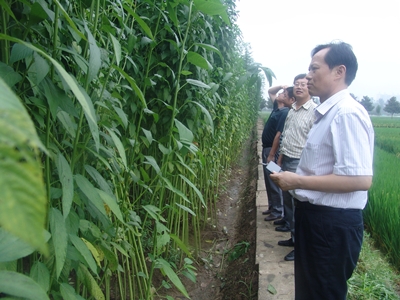 在院黨委書(shū)記韓勛來(lái)的陪同下,李德芳副所長(cháng)一行先后考察了我院紅麻試驗基地以及潢川縣隆古鄉紅麻生產(chǎn)示范基地,聽(tīng)取了信陽(yáng)紅麻試驗站站長(cháng)潘茲亮副研究員2014年該站工作開(kāi)展情況的匯報和潢川縣隆古鄉基地負責人紅麻示范推廣情況的介紹。