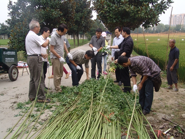 信陽(yáng)紅麻試驗站站長(cháng)潘茲亮副研究員向專(zhuān)家組介紹了信陽(yáng)紅麻試驗站任務(wù)開(kāi)展及任務(wù)完成情況,并在市農科院科學(xué)試驗園區、潢川縣隆古鄉示范基地進(jìn)行了現場(chǎng)測產(chǎn)。測產(chǎn)結果表明,信陽(yáng)紅麻試驗站承擔的紅麻高產(chǎn)高效種植技術(shù)研究與示范任務(wù)達到了畝產(chǎn)生麻600公斤、嫩莖葉300公斤和麻骨700公斤的目標,紅麻旱地高產(chǎn)技術(shù)研究與示范任務(wù)達到了紅麻畝產(chǎn)500公斤生麻、嫩莖葉200公斤和麻骨600公斤的目標。潘茲亮站長(cháng)表示,信陽(yáng)紅麻試驗站一定嚴格按照體系任務(wù)要求,做好試驗示范工作,為信陽(yáng)紅麻產(chǎn)業(yè)發(fā)展強有力的技術(shù)支撐。