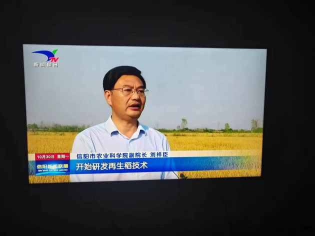 二、10月30日,信陽(yáng)電視臺《信陽(yáng)新聞聯(lián)播》欄目以“信陽(yáng):再生稻二茬豐產(chǎn)豐收”為題,報道了我院今年在推廣再生稻豐產(chǎn)技術(shù)所取得的成績(jì)。在我院的技術(shù)支持下,全市72.5萬(wàn)畝再生稻在第一季豐收已成定局的情況下,再生季又取得了喜人的成績(jì),羅山潘興、周黨等鄉鎮的再生稻經(jīng)專(zhuān)家現場(chǎng)測產(chǎn),二茬平均畝產(chǎn)在600斤左右。