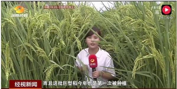 8月11日,隆回縣羊古坳鎮袁隆平超級稻高產(chǎn)攻關(guān)科研基地負責人王化永,站在田間與“水稻巨人”比高矮。說(shuō)到“這巨型稻比我1.65米的個(gè)子還高,接近2米”。