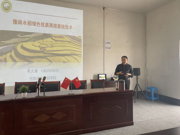 在羅山縣農業(yè)農村局組織舉辦的農業(yè)技能培訓會(huì )上,省科技特派員服務(wù)團隊為種植大戶(hù)作了《豫南水稻綠色優(yōu)質(zhì)高效栽培技術(shù)》的技術(shù)講座。從品種、稻田環(huán)境、不同育秧方式選擇、水肥管理、病蟲(chóng)害的綠色防控等多個(gè)生產(chǎn)環(huán)節詳細的講解了優(yōu)質(zhì)稻的標準化生產(chǎn)技術(shù),論述了豫南稻區種植再生稻、優(yōu)質(zhì)稻的區域優(yōu)勢和效益優(yōu)勢,鼓勵種田大戶(hù)用科學(xué)的方法生產(chǎn)優(yōu)質(zhì)稻、再生稻,把好的區域優(yōu)勢轉換為產(chǎn)量與效益優(yōu)勢。