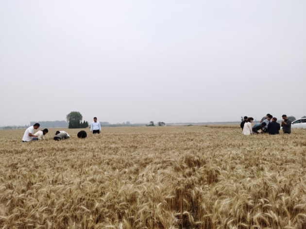 五月末梢,金黃遍野。當前,正值小麥收割的季節。5月26日,我院與息縣宏升糧食制品有限公司組織省市縣專(zhuān)家對河南省“揭榜掛帥”技術(shù)攻關(guān)專(zhuān)項“豫南釀酒專(zhuān)用弱筋小麥優(yōu)質(zhì)高效產(chǎn)業(yè)化集成技術(shù)研究與規;瘧”項店鎮李樓村信陽(yáng)鴻潤家庭農場(chǎng)小麥示范區進(jìn)行了測產(chǎn)驗收,經(jīng)過(guò)測產(chǎn),釀酒小麥信麥163千畝方平均畝產(chǎn)達到了567.3公斤,弱筋小麥揚麥13萬(wàn)畝方平均畝產(chǎn)達到了434.5公斤。