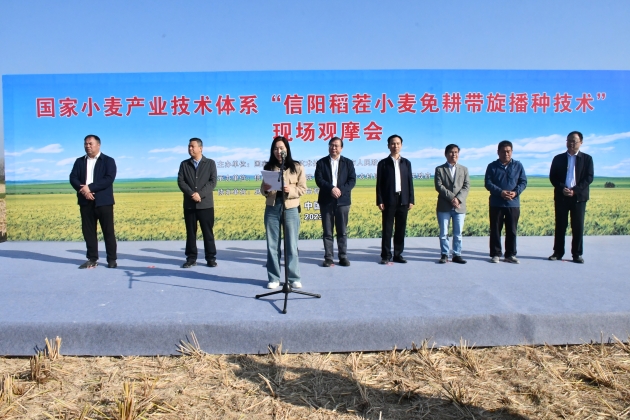汪明君副市長(cháng)在致辭中表示,國家小麥產(chǎn)業(yè)技術(shù)體系“信陽(yáng)市稻茬小麥免耕帶旋播種技術(shù)”現場(chǎng)觀(guān)摩暨技術(shù)培訓會(huì )的召開(kāi),是信陽(yáng)堅決落實(shí)“扛穩糧食安全這個(gè)重任”的重大舉措,也是稻茬小麥播種新技術(shù)在信陽(yáng)落地開(kāi)花的重要見(jiàn)證。信陽(yáng)是全省小麥產(chǎn)量潛力最大的區域,免耕帶旋播種技術(shù)作為一項小麥栽培新技術(shù),基于機具設計創(chuàng )新和農藝優(yōu)化創(chuàng )新而成,能實(shí)現一播全苗,有效解決了稻茬小麥“播不下、出不齊、長(cháng)不好”的技術(shù)難題,節本增產(chǎn)效果顯著(zhù)。此次技術(shù)培訓會(huì )的舉辦,為信陽(yáng)弱筋小麥產(chǎn)業(yè)科技賦能、品質(zhì)提升、品牌建設提供了有利契機,也為加快老區振興發(fā)展注入新的強大動(dòng)力。相信在國家小麥產(chǎn)業(yè)技術(shù)體系各位專(zhuān)家的悉心指導下,信陽(yáng)弱筋小麥產(chǎn)業(yè)將會(huì )結出更加豐碩之果。