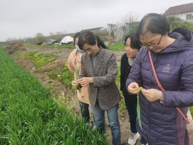 春雨綿綿,方保停一行人首先來(lái)到息縣示范區進(jìn)行調研查看,與當地縣所負責人深入田間地頭查看小麥苗情。近期降雨量較大,田間濕度較大,截止目前為止,息縣示范方暫無(wú)病、蟲(chóng)害發(fā)生;專(zhuān)題負責人方保停提醒基地技術(shù)負責人,及時(shí)采取排水措施,溝渠相通,減少漬害降低田間濕度。